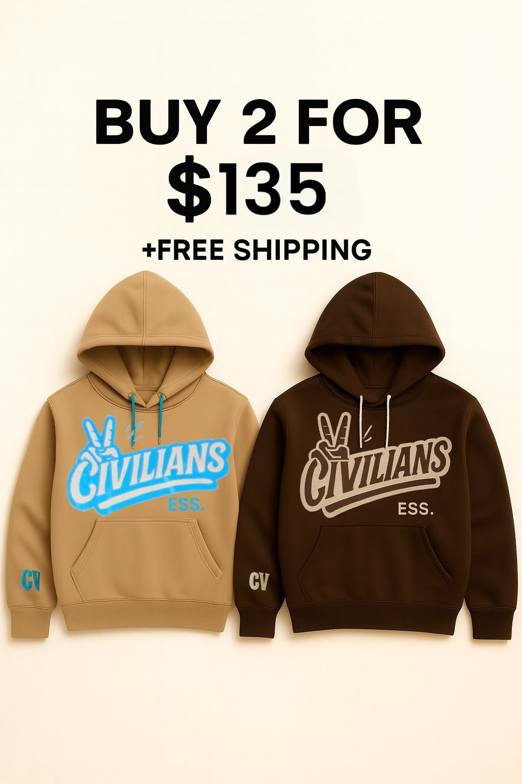 Double the impact, double the message. With the Civilians ESS Hoodie Bundle, you can choose any two hoodies from the collection and rep the movement louder than ever.