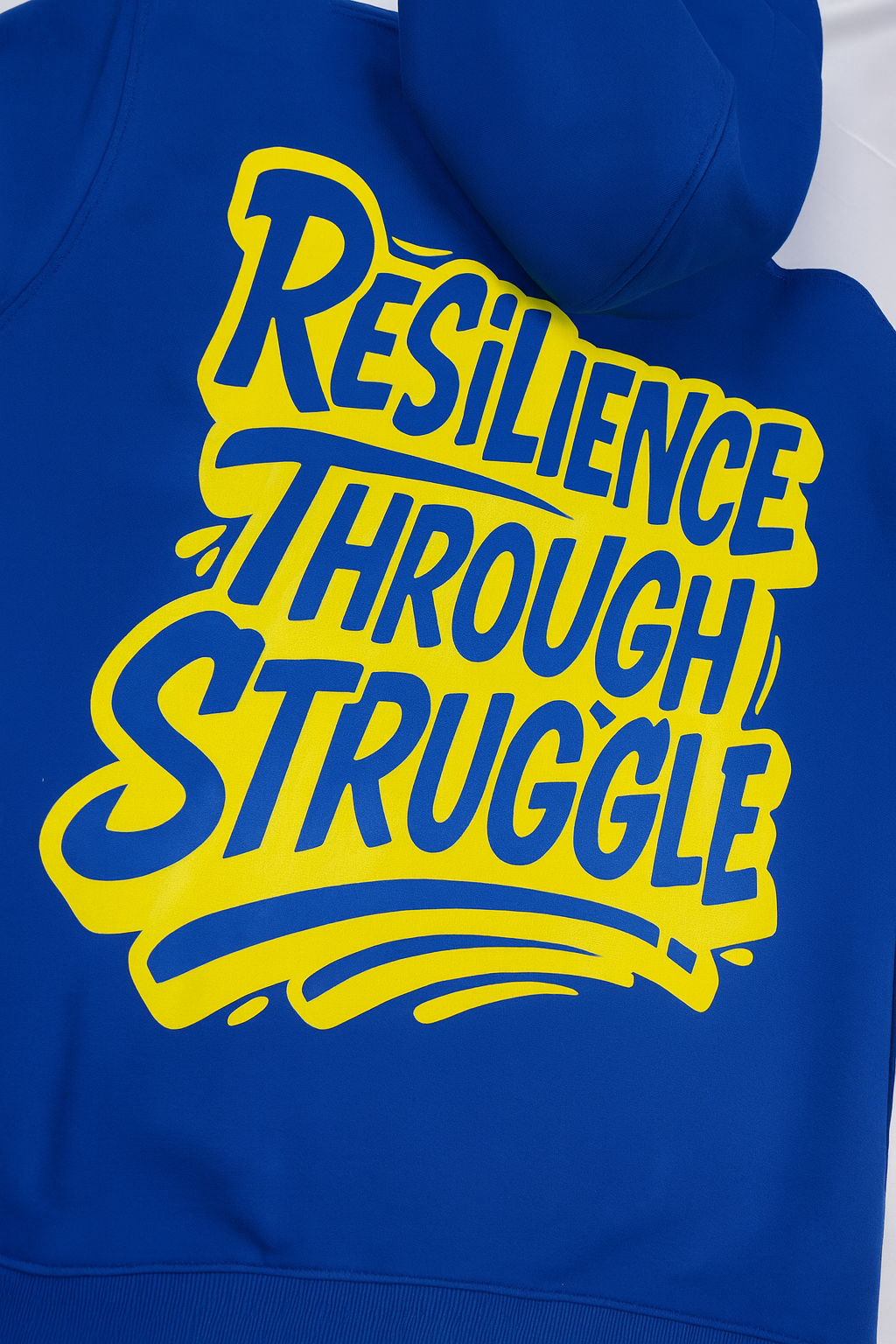 - Back Design: “Resilience Through Struggle” stretches across the back in bold gold, amplifying the message of perseverance and triumph.
