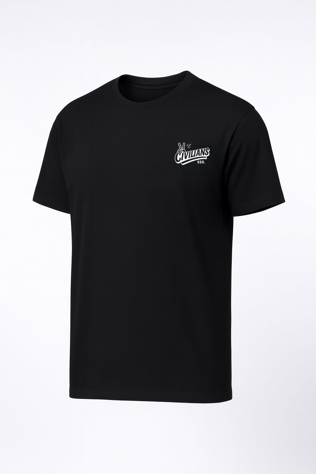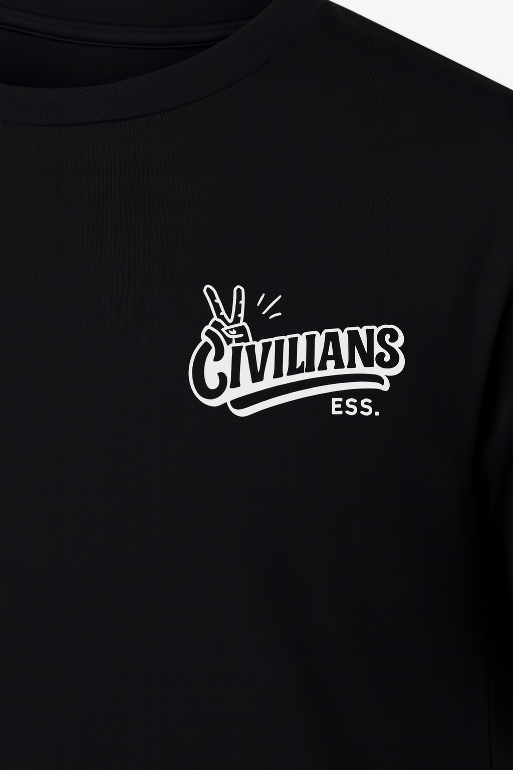 Front: Features the Civilians ESS logo with peace-sign hand graphic on the left chest—minimal, versatile, and timeless.