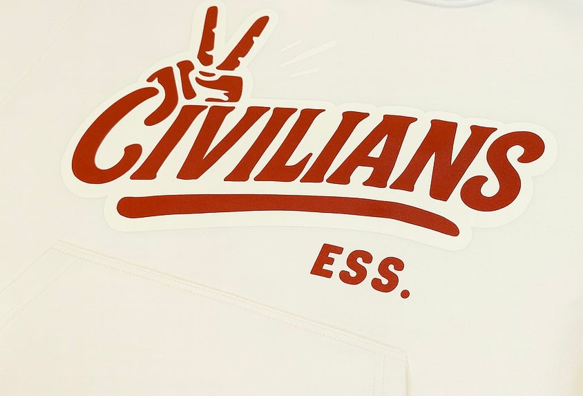 - Front Design: The bold crimson Civilians logo with peace-sign hand reflects courage, unity, and the determination to stand strong through challenges.